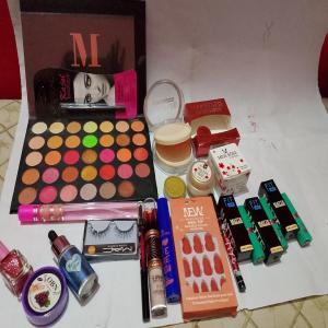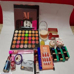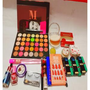 β’ Package Includes: 1 x Eyeshadow, 1 x Kajal Pencil, 3 x Lipsticks, 1 x Stick Foundation, 1 x Eyeliner, 1 x Mascara, 1 x Fake Nails, 1 x Peel Off Nail Polish, 1 x Liquid Highlighter, 1 x Concealer, 1 x False Eyelashes, 1 x Eyebrows Pencil