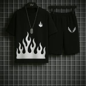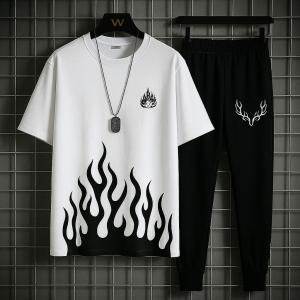 New trendy fired printed black & white premium quality tracksuit for men and boys / Tracksuit for men & boys with shorts or tracksuit for men & boys with trousers